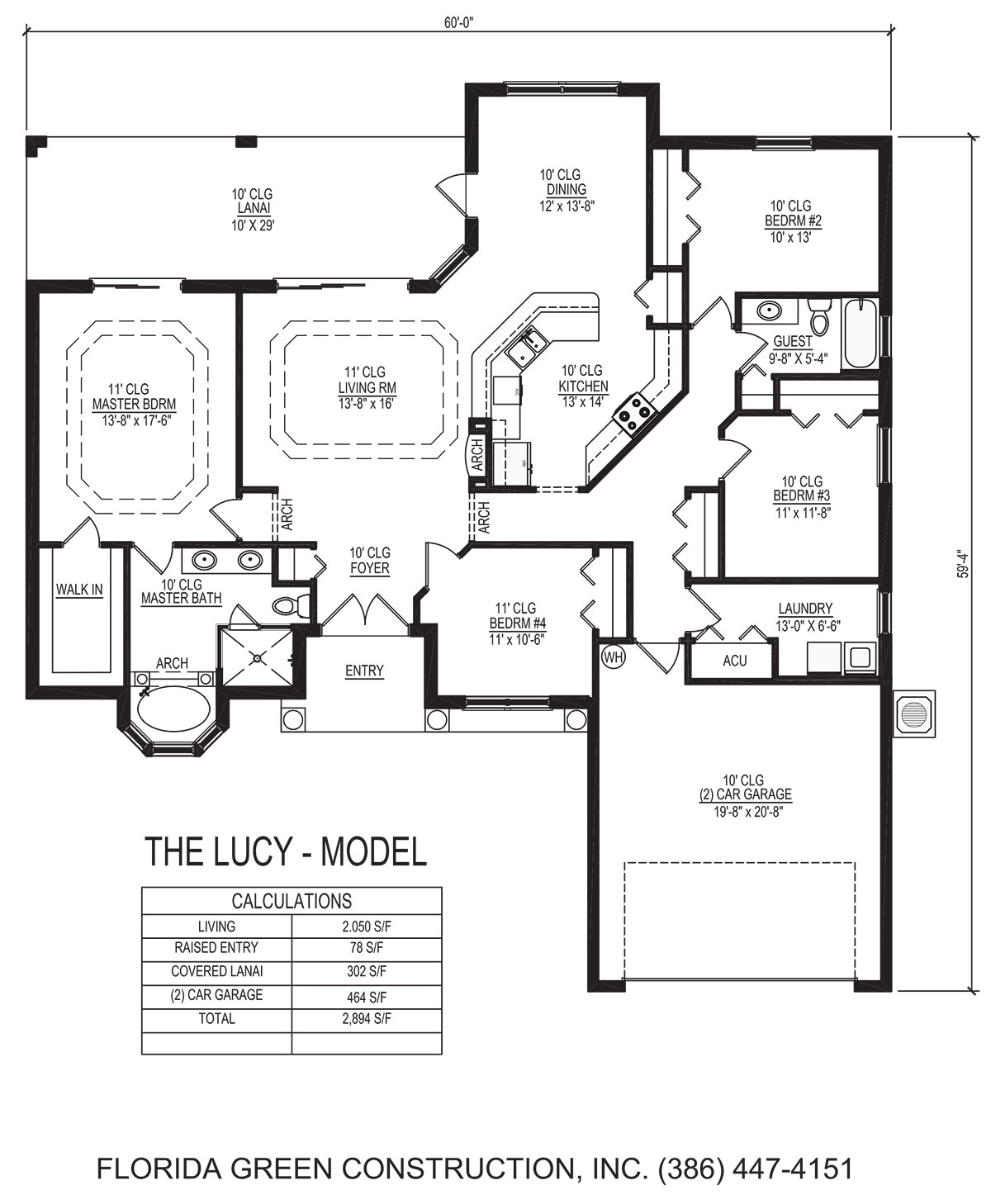 The Lucy is elegant and comfortable, with 1,911 SF of living area and 2,726 SF under roof. A split floorplan with an open and bright interior. Three-bedroom two bath with den/optional fourth bedroom and oversized covered lanai. Gourmet kitchen: high quality 42 in wood cabinets with crown molding above and soft close hardware, stainless steel appliances, microwave vented outside granite counter and vanity tops, tile and laminate throughout and much more.