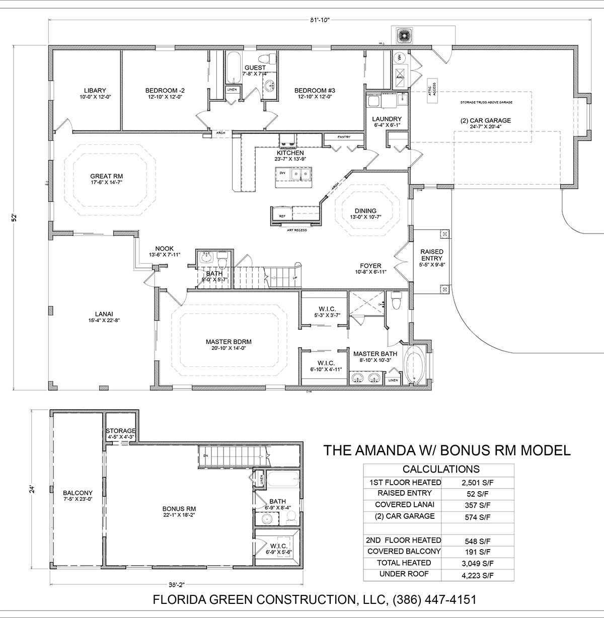 The Amanda 2 story is elegant and comfortable, with luxury interior features. 10 feet ceilings that extend to 12 feet in some areas, & decorative trays. A split floorplan with an open and bright interior 8 feet exterior and interior doors. Three bedrooms, 2 master suites. Three en suite bathrooms, powder room, covered lanai on first floor and bonus room balcony on second floor, and side entry garage.