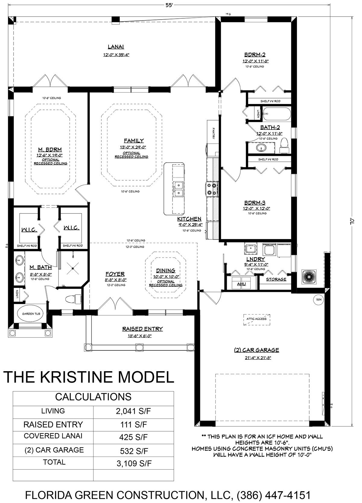 With three bedrooms and two bathrooms, the Kristine floor plan accommodates various lifestyles. The total square footage of 3,109 includes spacious living areas, a modern kitchen, and ample storage options, ensuring that every inch is utilized efficiently for everyday living.